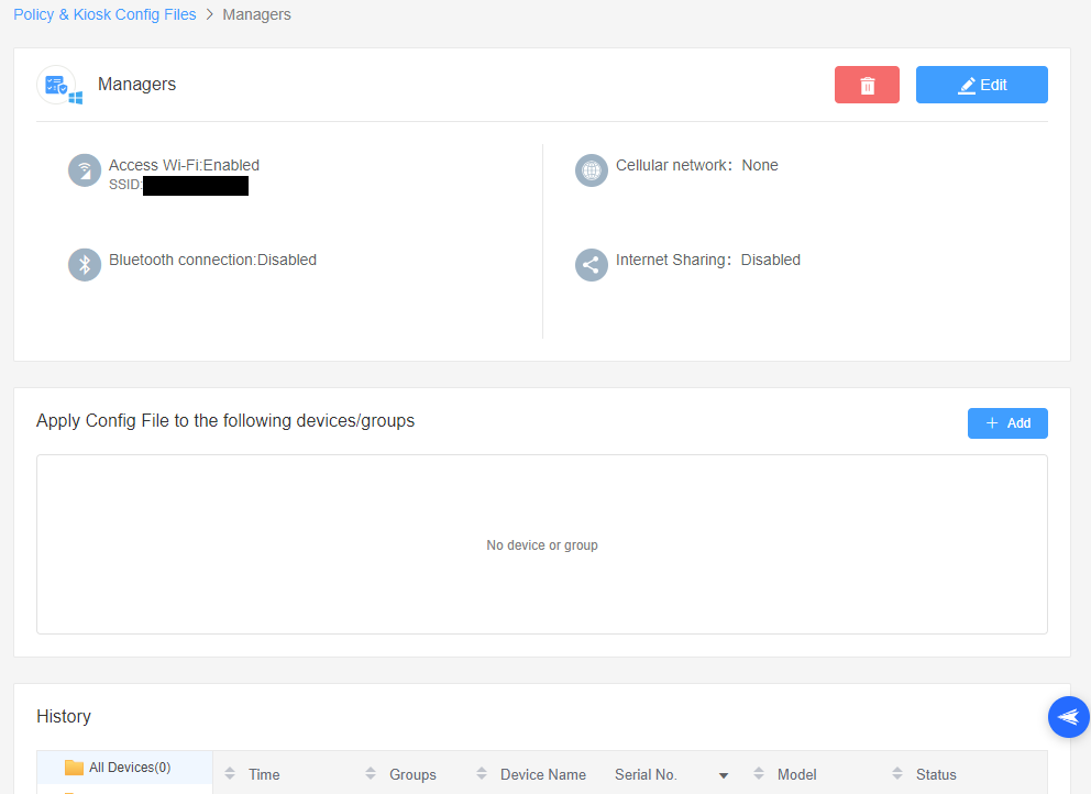 6. In der Sektion der allgemeinen Informationen können Sie die Konfigurationsdatei auf die Geräte oder Gruppen anwenden.