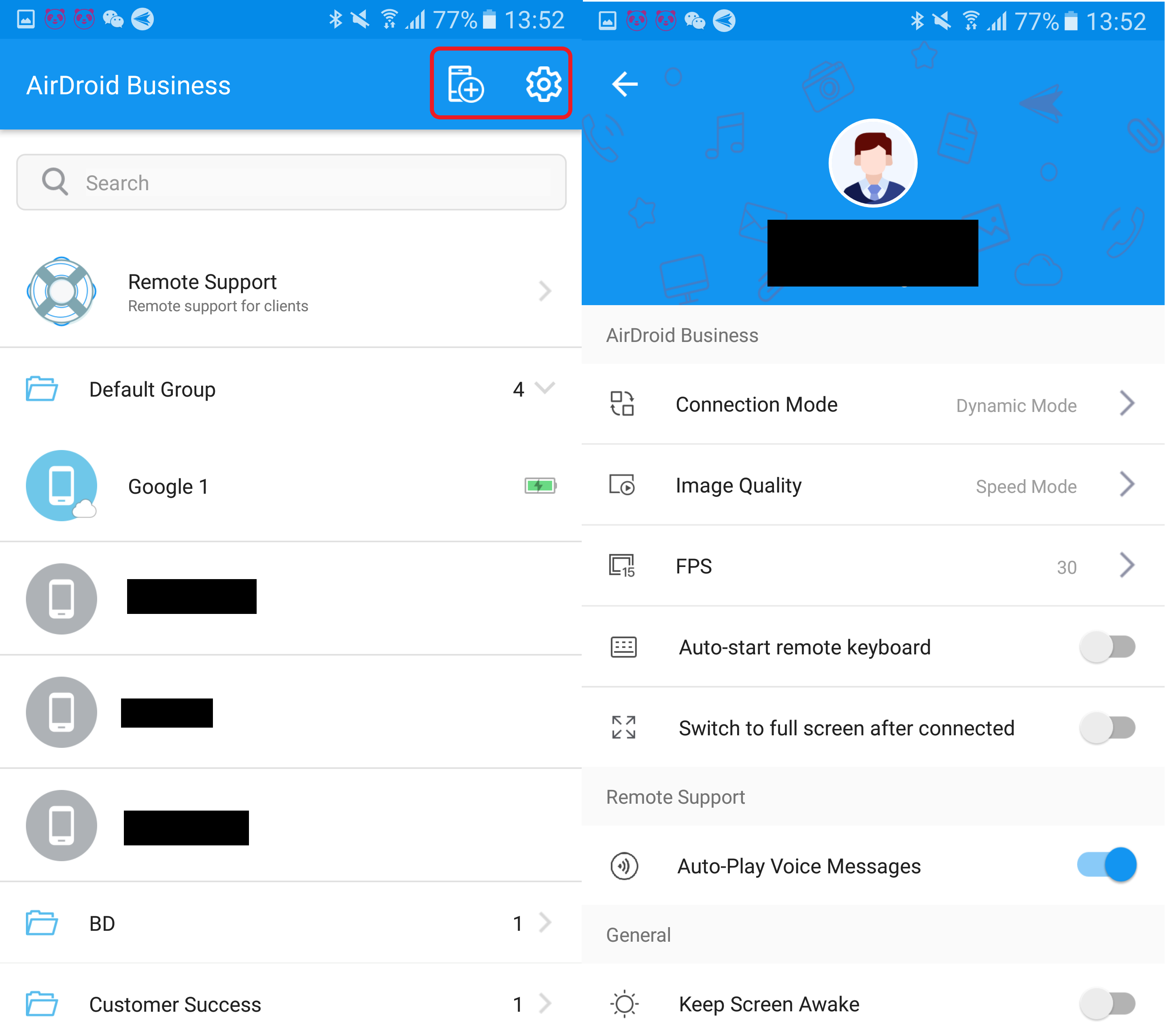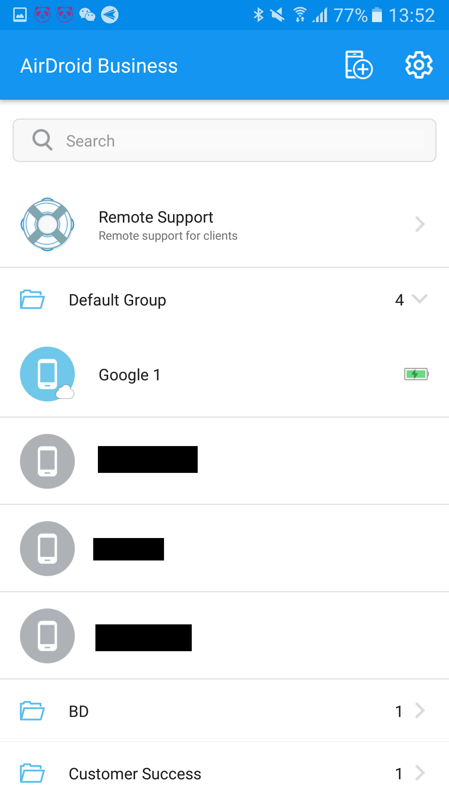 1. Nach dem Einloggen in die AirDroid Business-App sollten Sie die Gerätegruppen oder Geräte sehen, auf die Sie zugreifen können.