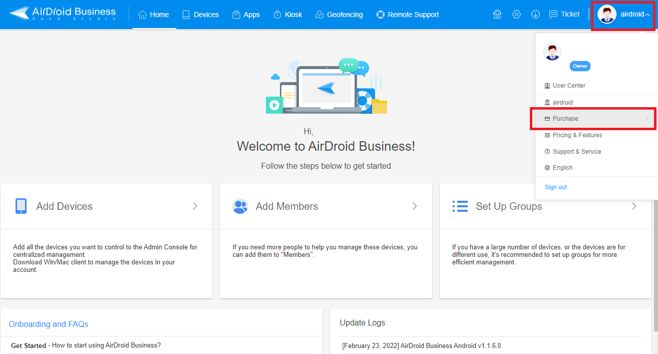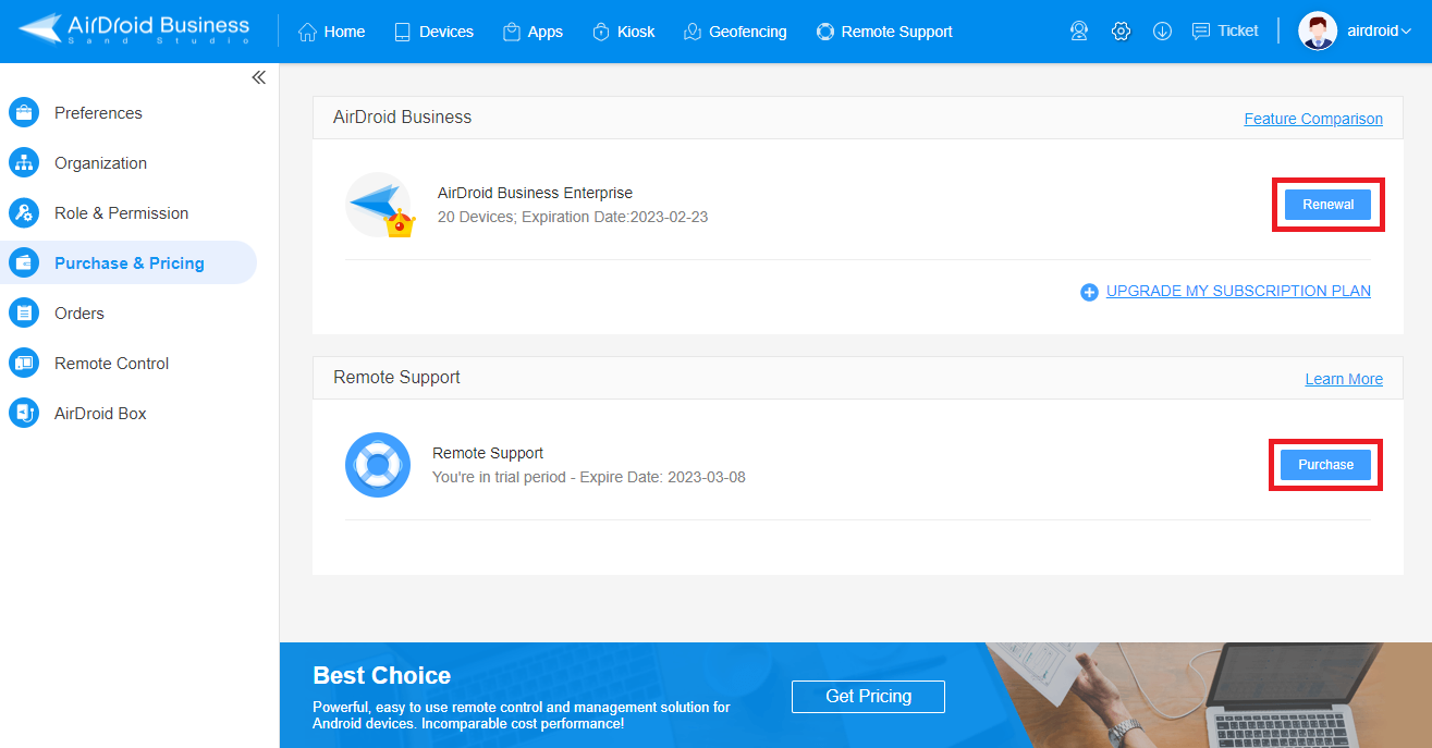Bitte folgen Sie der untenstehenden Anleitung, um AirDroid Business zu kaufen oder zu erneuern:
