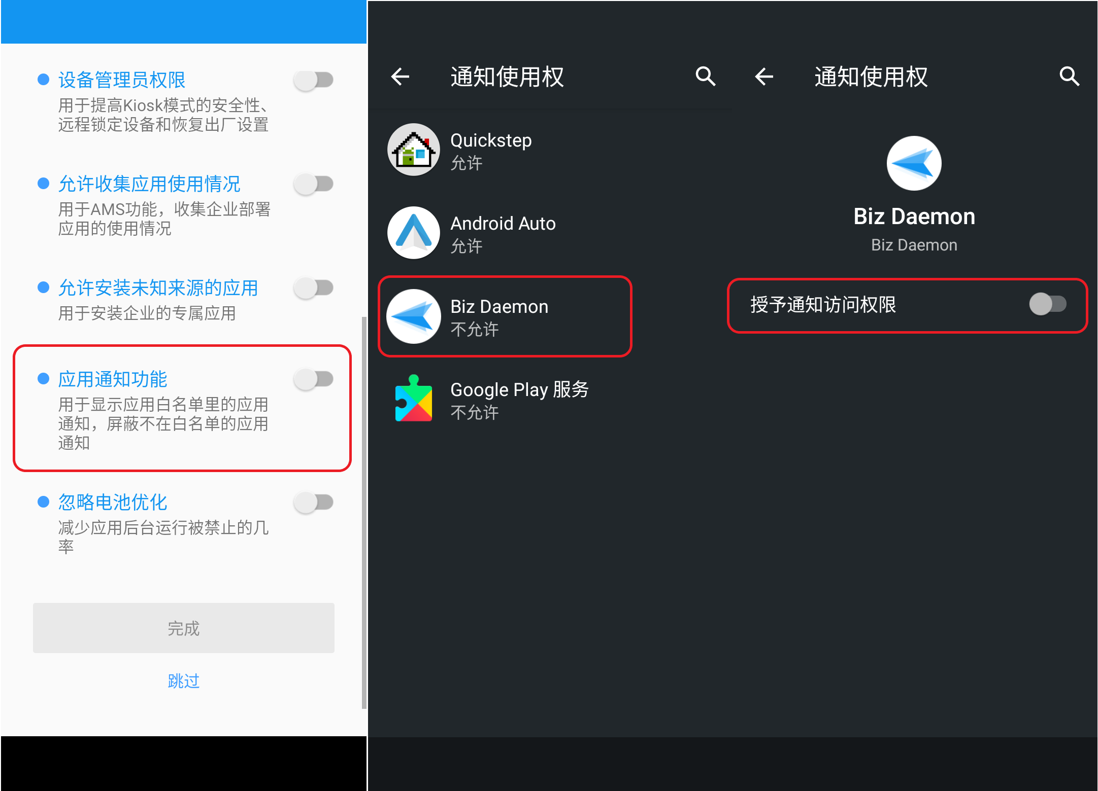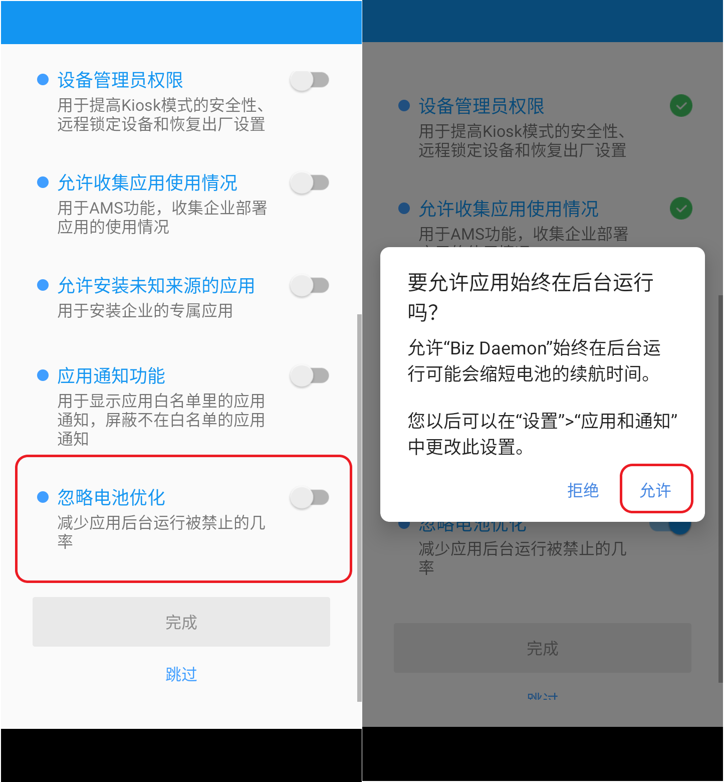 ● 忽略电池优化: 优化 Biz Daemon 的整体功能