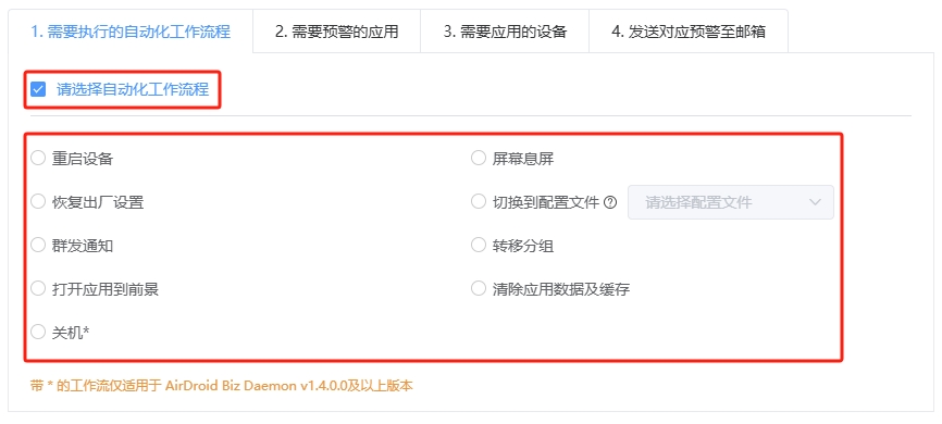 4. (非必选)您可以勾选「请选择自动化工作流程」来为该预警设置工作流程。