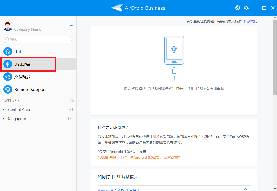 2. 您可以透过「USB 部署」为您要部署的设备获取 Device Owener(设备所有者权限)。