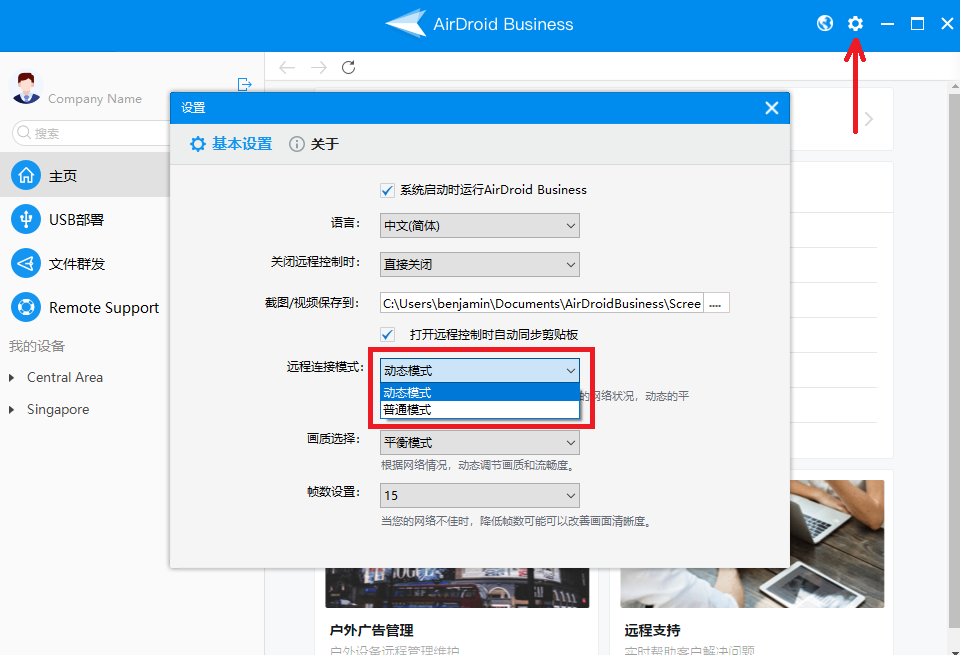 如何在 AirDroid Business 桌面端上切换到动态模式: