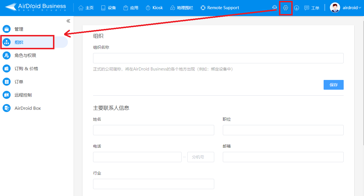 组织名称是您的公司名称缩写,该名称将出现在AirDroid Business上,此名称也会在您绑定设备时显示。