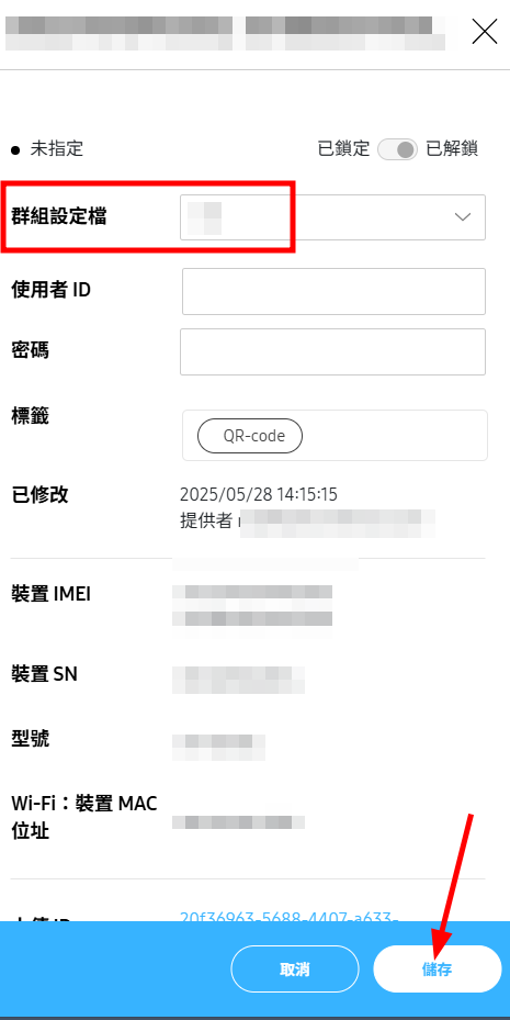 7. 返回设备 > 选择您想要注册的设备 > 选择配置设备 > 分配您创建的配置文件并「儲存」。