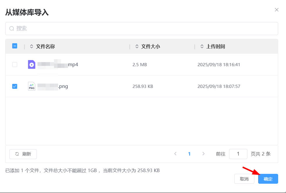2. 输入任务名称,点击 + 从媒体库导入 以添加文件。