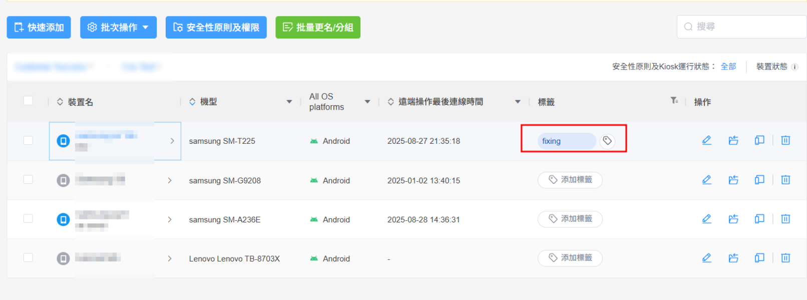 如果您需要執行某些操作,例如重啟裝置和通知,或對多個裝置套用安全性原則/Kiosk 設定檔,請參考此部分。 有關 Android 和 Windows 裝置操作的更多詳細資訊,請參考此文章。