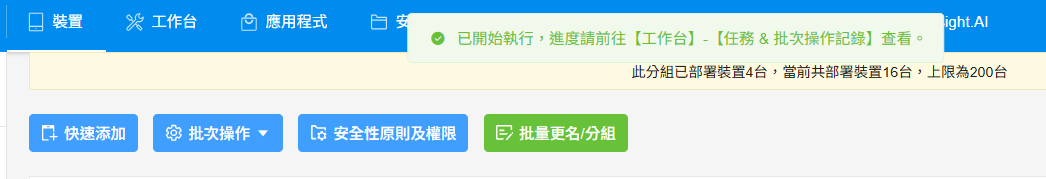 2. 選擇希望執行的批次操作,例如重啟裝置、群發通知。若了解更多,請參考此文章。