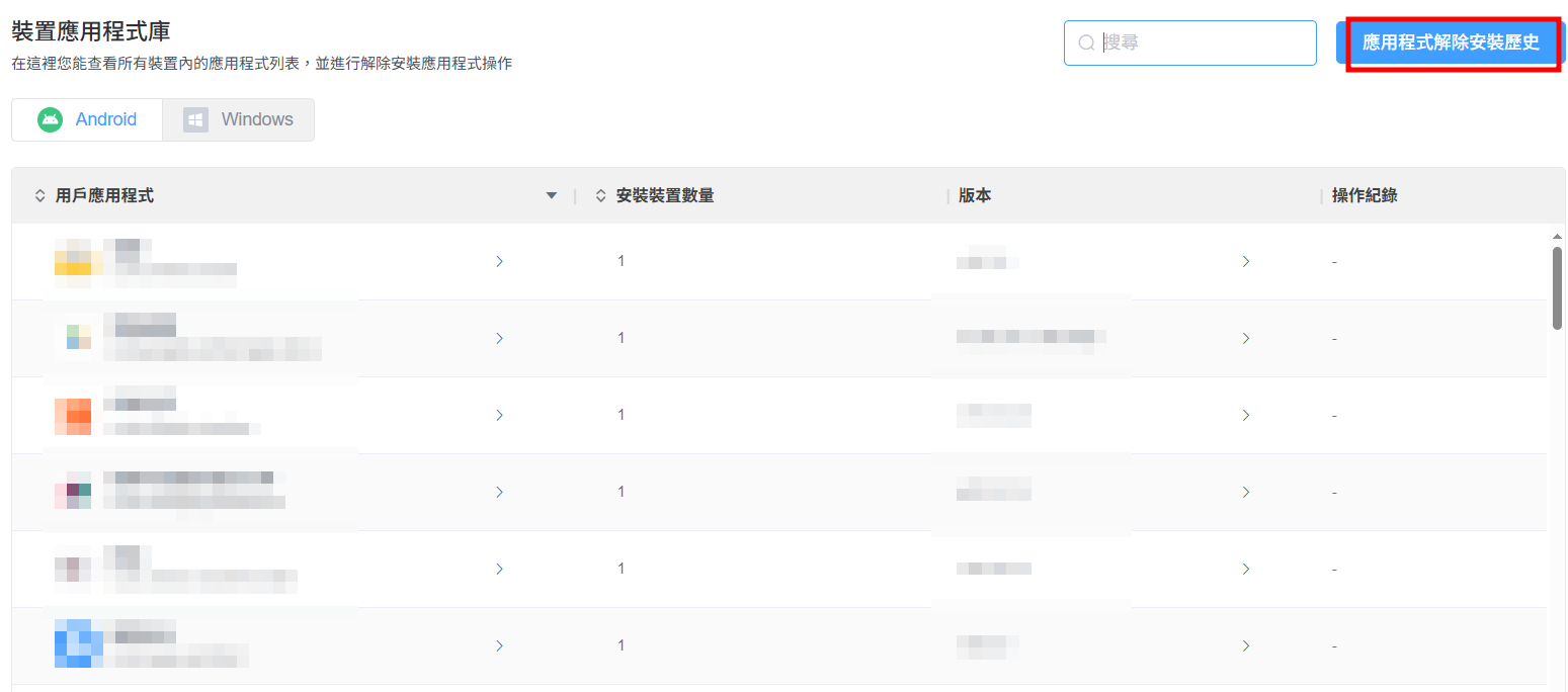 裝置應用程式庫功能是完善我們 AMS 的重要功能之一,用於在操作層面管理裝置上的應用程式。透過此功能,您可以輕鬆檢查裝置上安裝的應用程式版本,並透過點擊幾下即可執行大量解除安裝。