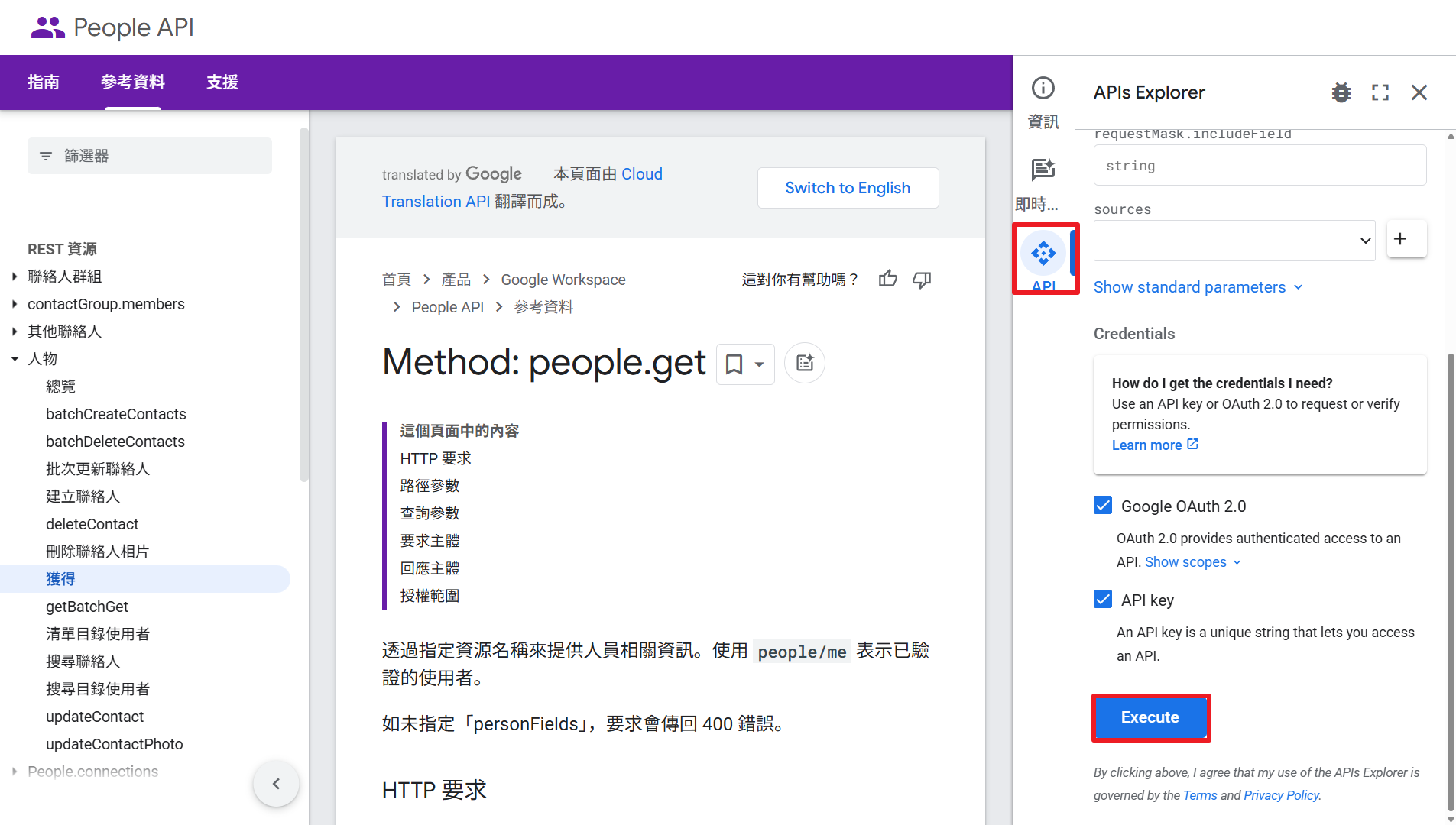 4. 如果您沒有 Google 帳戶 ID,請點擊 此連結 > 選擇 API > 點擊「試用」 > 點擊「執行」。