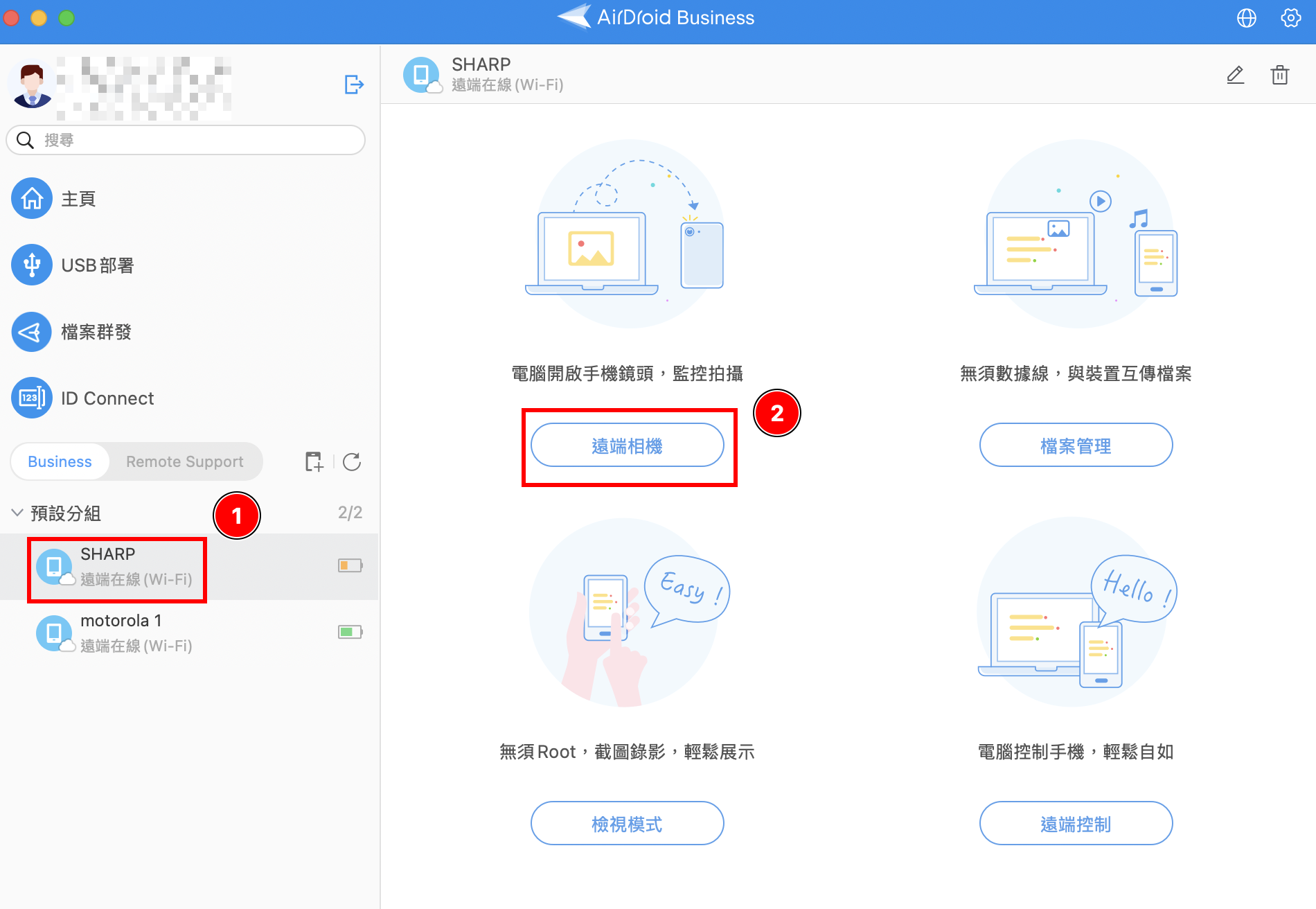 在遠端相機下,使用者可以透過 Wi-Fi 或行動網路來控制他們的裝置相機。