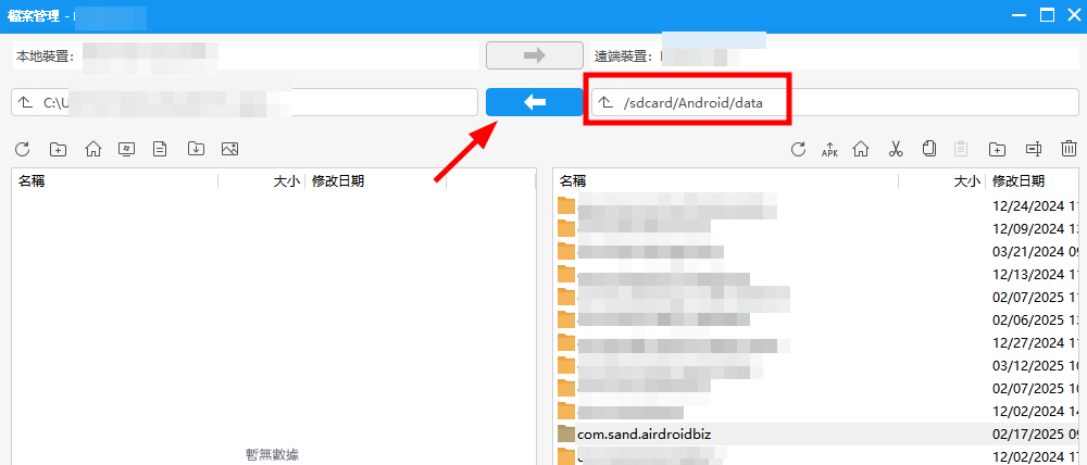 2. 在路徑中找到檔案 /sdcard/Android/data/com.sand.airdroidbiz/