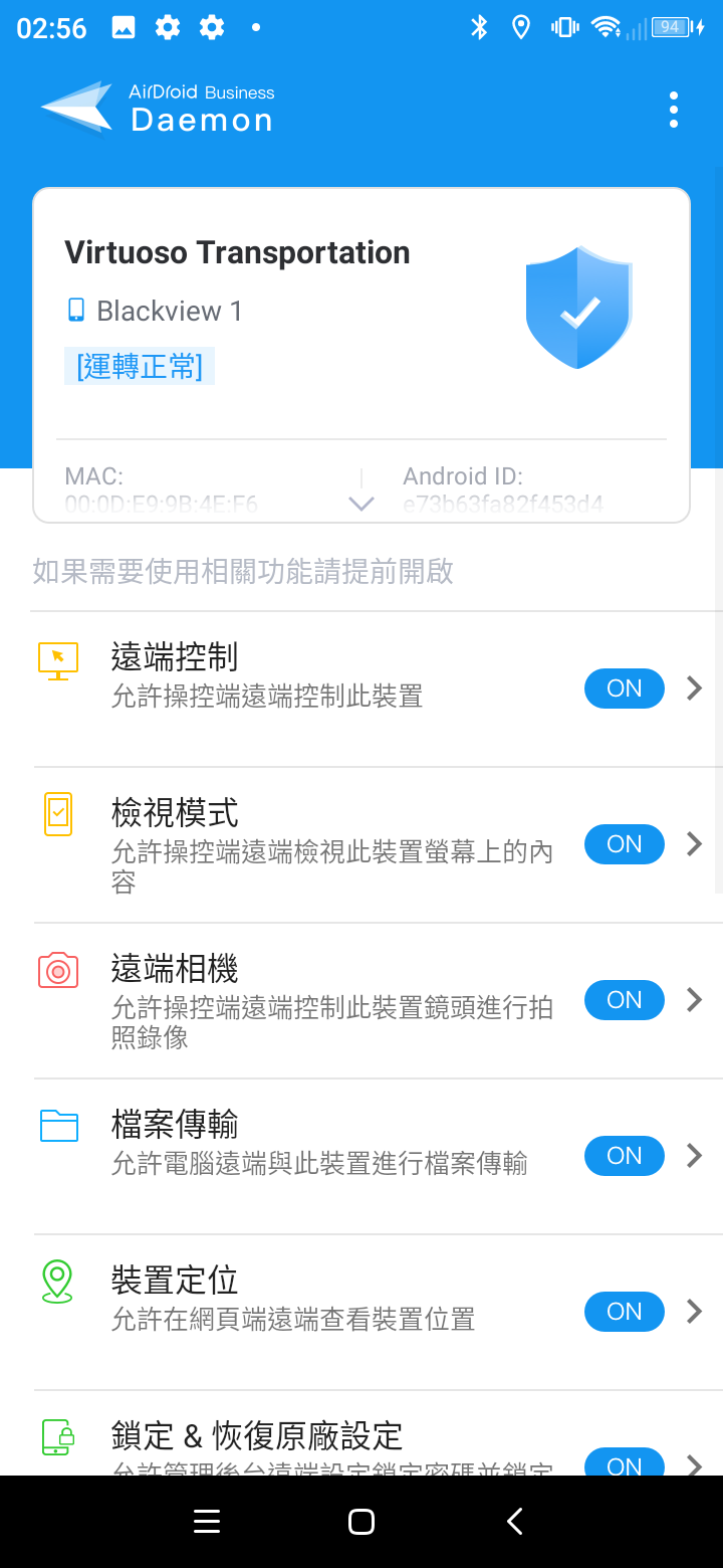 - 裝置擁有者、裝置管理應用程式和允許收集使用數據權限可能因系統限制而無法在您的裝置上使用,這表示您無法使用應用程式清單和 Kiosk 模式功能。