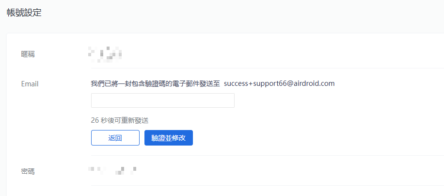 2. 點擊變更並開始修改Email > 填寫您需要更改的 Email 地址 > 輸入您的帳號密碼以發送驗證 Email。