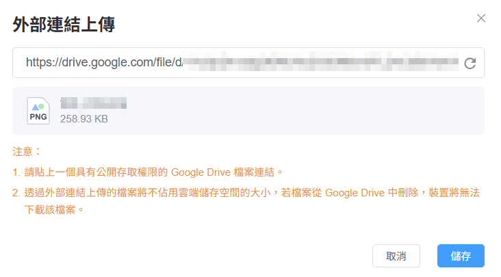 2. 您只能貼上具有公共訪問權限的有效 Google Drive URL,並應保持該 URL 可供訪問。