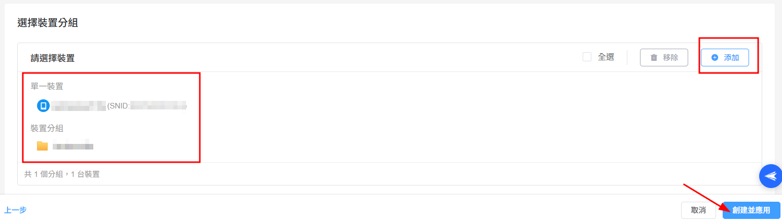 7. 您可選擇指定的設備或群組來套用螢幕保護模式或廣告機模式。